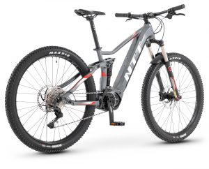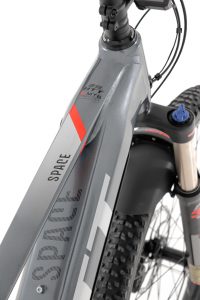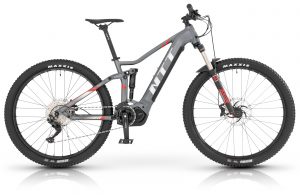 Una bicicleta eléctrica de aluminio de doble suspensión.